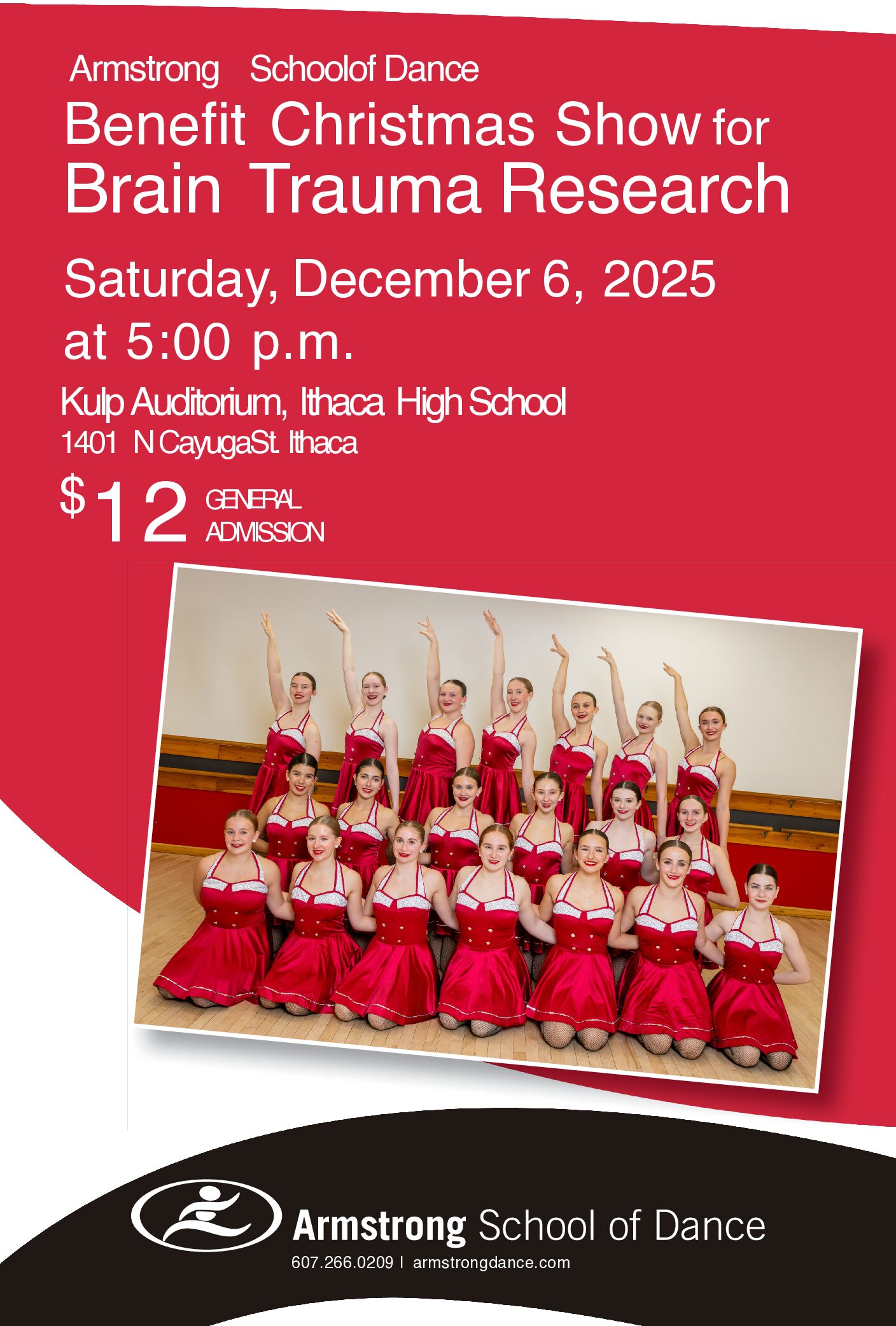 All are invited to attend the Armstrong School of Dance Christmas Benefit Show for Brain Trauma Research to be held on December 6th at the Kulp Auditorium at Ithaca High School.